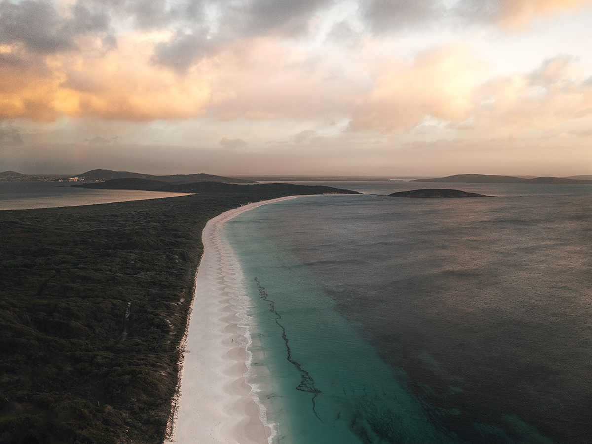 Goode Beach is one of Albany’s best “quiet but ridiculously pretty” swims. With soft sand, clear blue-green water, and a tucked-away feel. It sits on the Vancouver Peninsula with sheltered views across the Sound and out toward Mount Manypeaks. It’s the kind of beach where the water stays inviting even when the wider coast looks a bit wild.