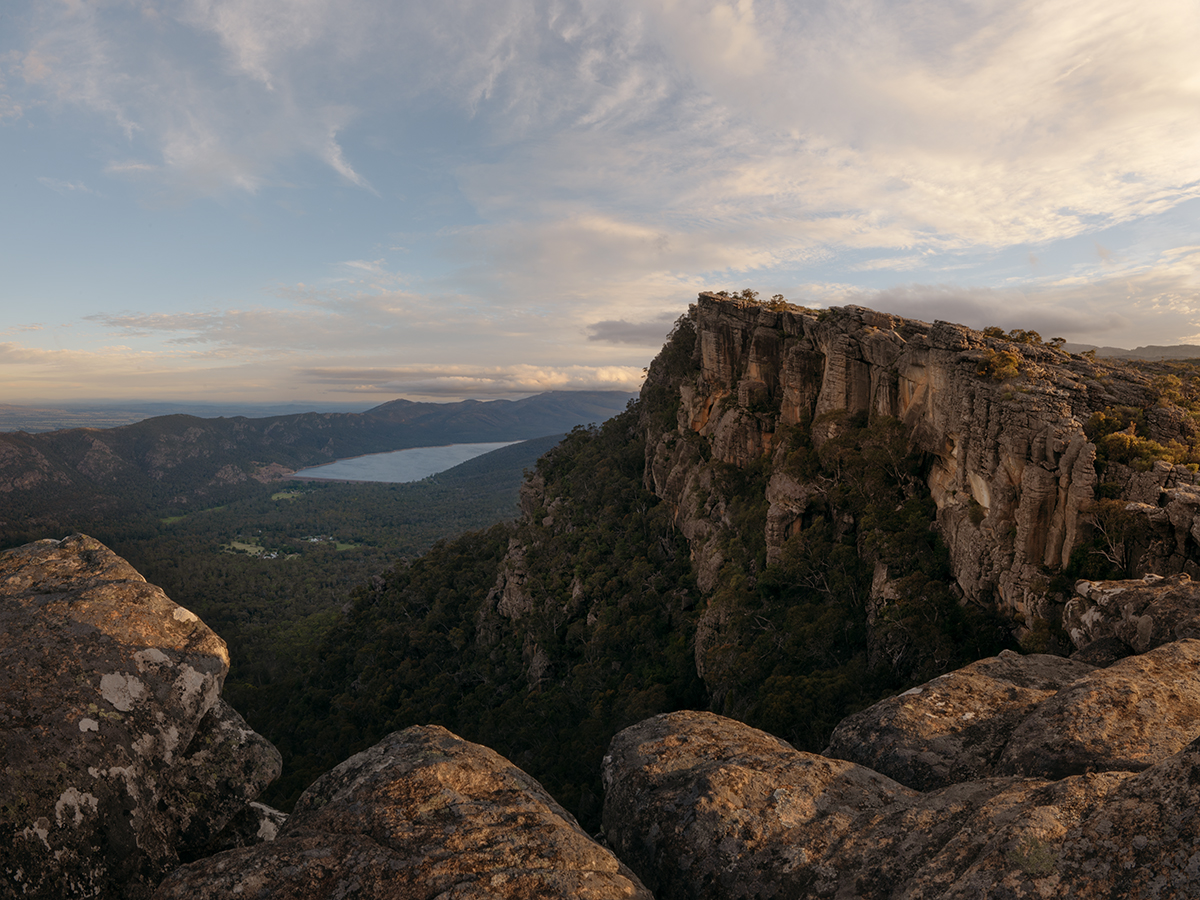 Golden hour looking south at the Pinnacle and Lake Bellfield. The rocks around the summit caught the sunset perfectly, turning rich gold. A beautiful finish to the day with one of the best views in the Grampians.