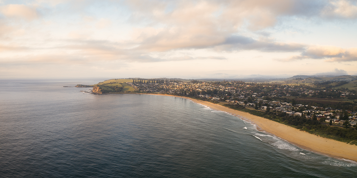 Probably one of the most stunning coastal towns in NSW, with big views. Gerringong is a relaxed coastal village just south of Kiama where green farmland rolls straight into the sea. It’s known for wide, clean beaches like Werri Beach, a calm lagoon, and headland lookouts where you can watch the swell wrap around the bay. The town itself has a slow, easy vibe, with cafés, local shops, and that constant backdrop of ocean air and dairy country.