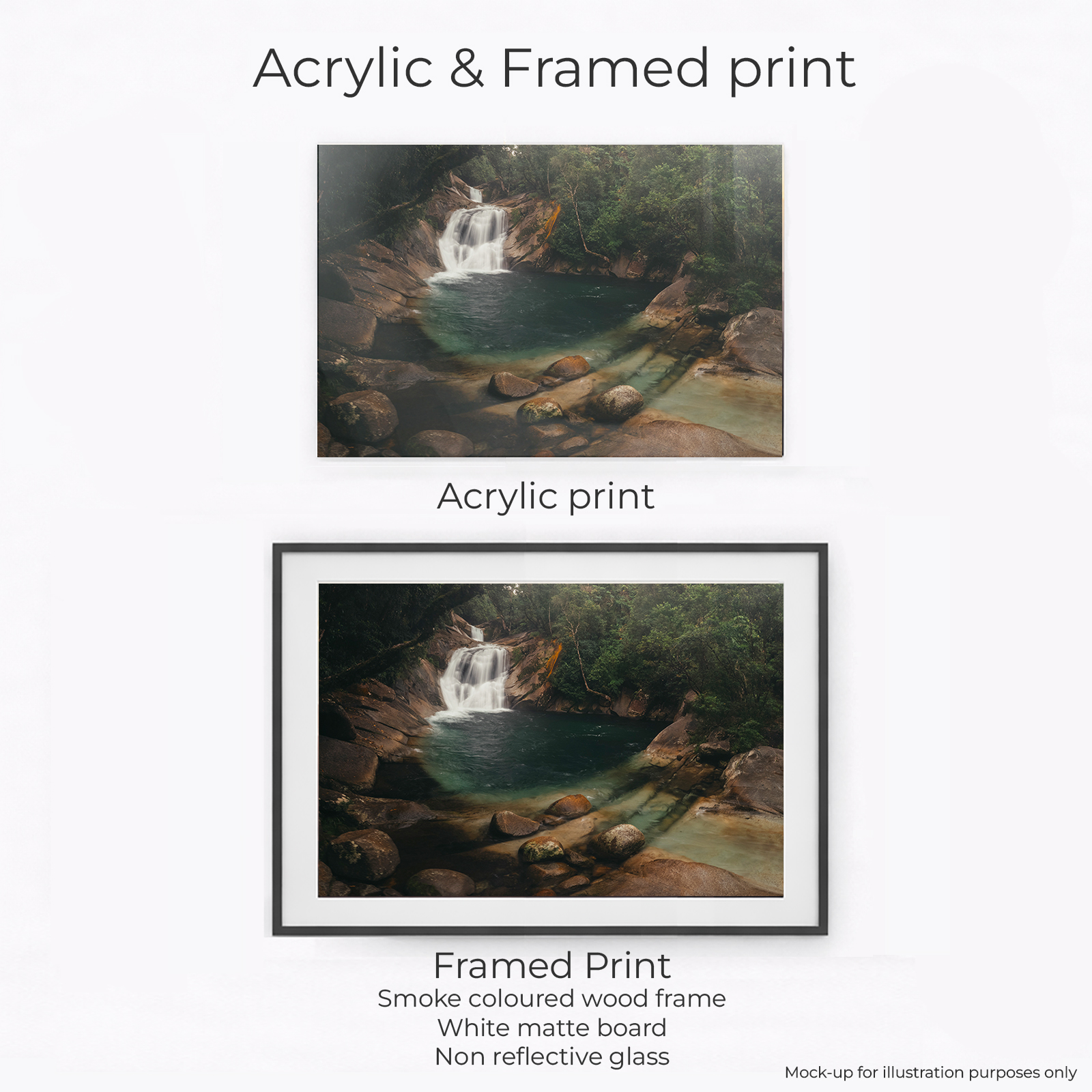 This print features Josephine Falls, a lush rainforest waterfall located south of Cairns in Far North Queensland. The falls cascade over smooth granite rock, shaped by constant water flow and tropical weather. Josephine Falls flows year-round and is a popular swimming hole. It’s a place known for clear water, natural rock slides, and a strong connection to the tropical landscape. This print brings a fresh, vibrant energy to a space, capturing the relaxed but powerful feel of North Queensland rainforests.