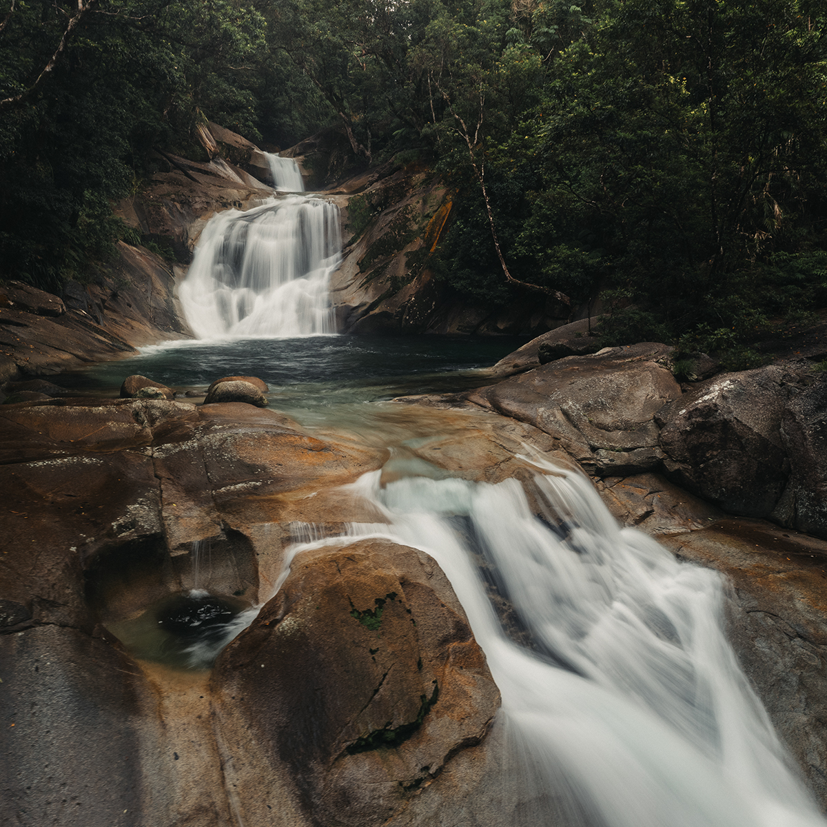 This print features Josephine Falls, a lush rainforest waterfall located south of Cairns in Far North Queensland. The falls cascade over smooth granite rock, shaped by constant water flow and tropical weather. Josephine Falls flows year-round and is a popular swimming hole. It’s a place known for clear water, natural rock slides, and a strong connection to the tropical landscape. This print brings a fresh, vibrant energy to a space, capturing the relaxed but powerful feel of North Queensland rainforests.