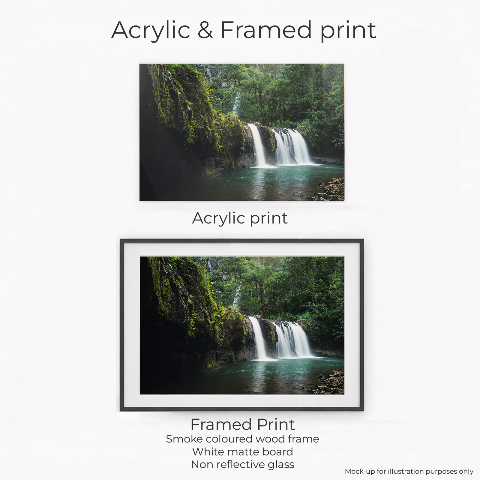 This print captures Nandroya Falls, hidden deep in the rainforest south of Cairns. A tall, narrow cascade drops into a dark volcanic pool, surrounded by dense tropical canopy. The falls sit within Wooroonooran National Park, part of the Wet Tropics World Heritage Area. The landscape here is ancient. Basalt cliffs, thick moss, and layered rainforest shaped by constant rainfall. Reaching Nandroya Falls requires a moderate walk through humid forest and hilly terrain. Compared to some of the other waterfall walks in the area though, it is one of the easier ones, with not too much total elevation gain. The area is quiet, moody, and untouched.