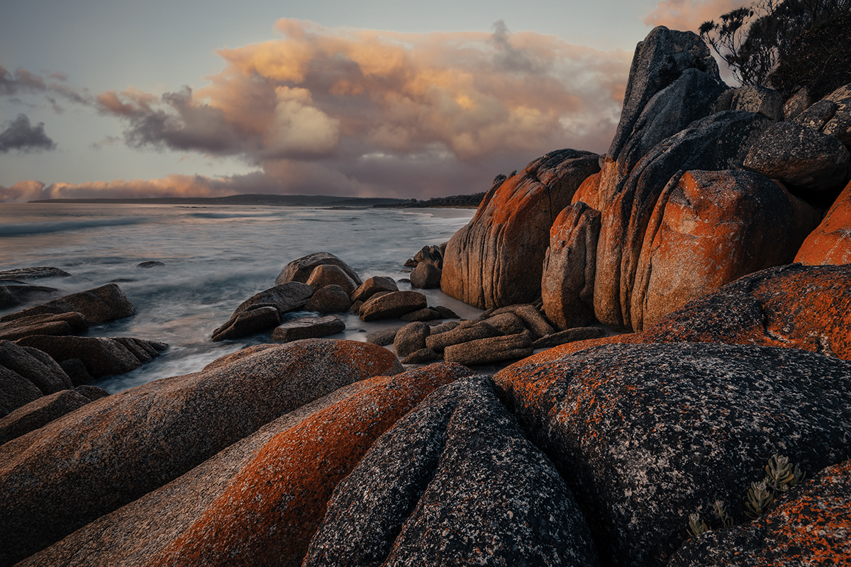 The Bay of Fires in Tasmania is a beautiful place to explore the coast. What makes the scene instantly recognisable are the big granite boulders stained vivid orange by lichen. That rusty colour against turquoise water is the whole Bay of Fires “wow” factor, especially around the headlands and rock shelves where the boulders stack up along the tide line. At low tide you’ll often get clear rock pools and thin sheets of water sliding over the granite. A great place to relax and explore.